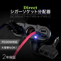 シガーソケット分配器 ダイレクトタイプ USB PD30W対応Type-Cポート搭載 (OWL-CCUCD2D)