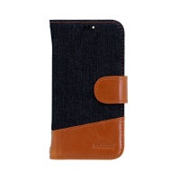 _ > iPhone 12 mini (5.4インチ) 用 デニム×PUレザー 手帳型ケース インディゴブルー × キャメル(OWL-CVIC5412-IDCA)